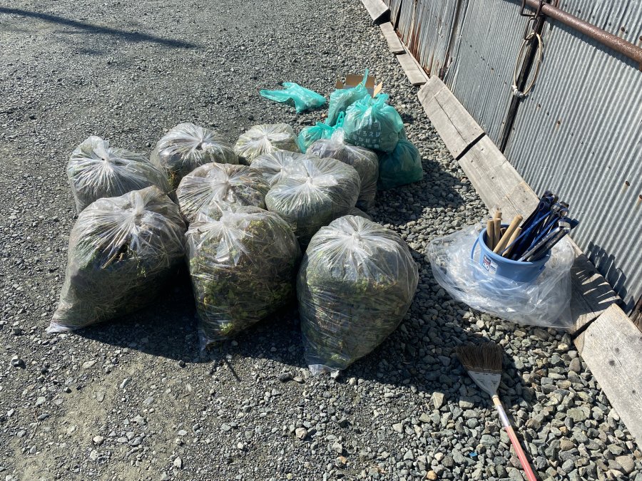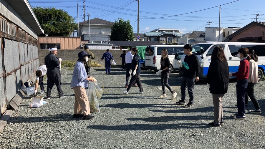 朝礼後、本社勤務の社員が本社社屋や社員駐車場のごみ拾い・草取りなどを行い、まちの美化に貢献できたかと思います。