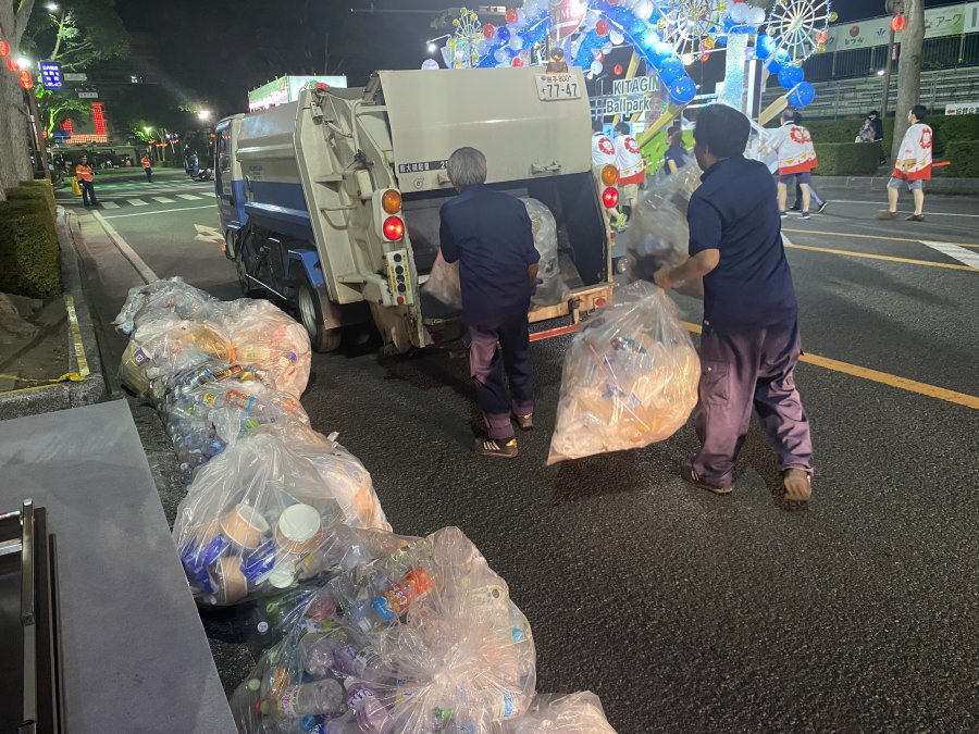 パレード後に道に落ちているごみも含めて清掃車で回収をしました。