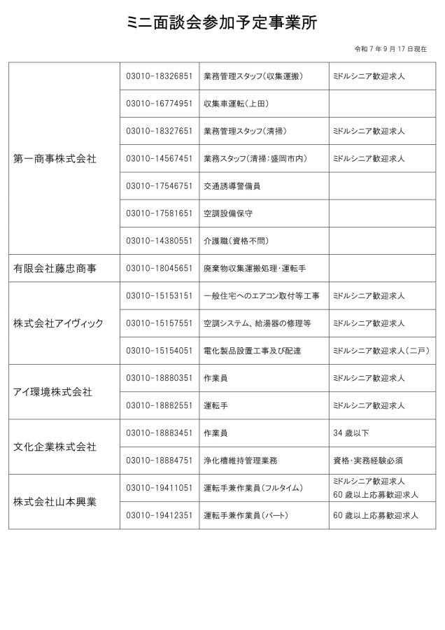 10/10(金)に行われる盛岡市廃棄物業協会主催のミニ面談会に弊社も参加いたします!